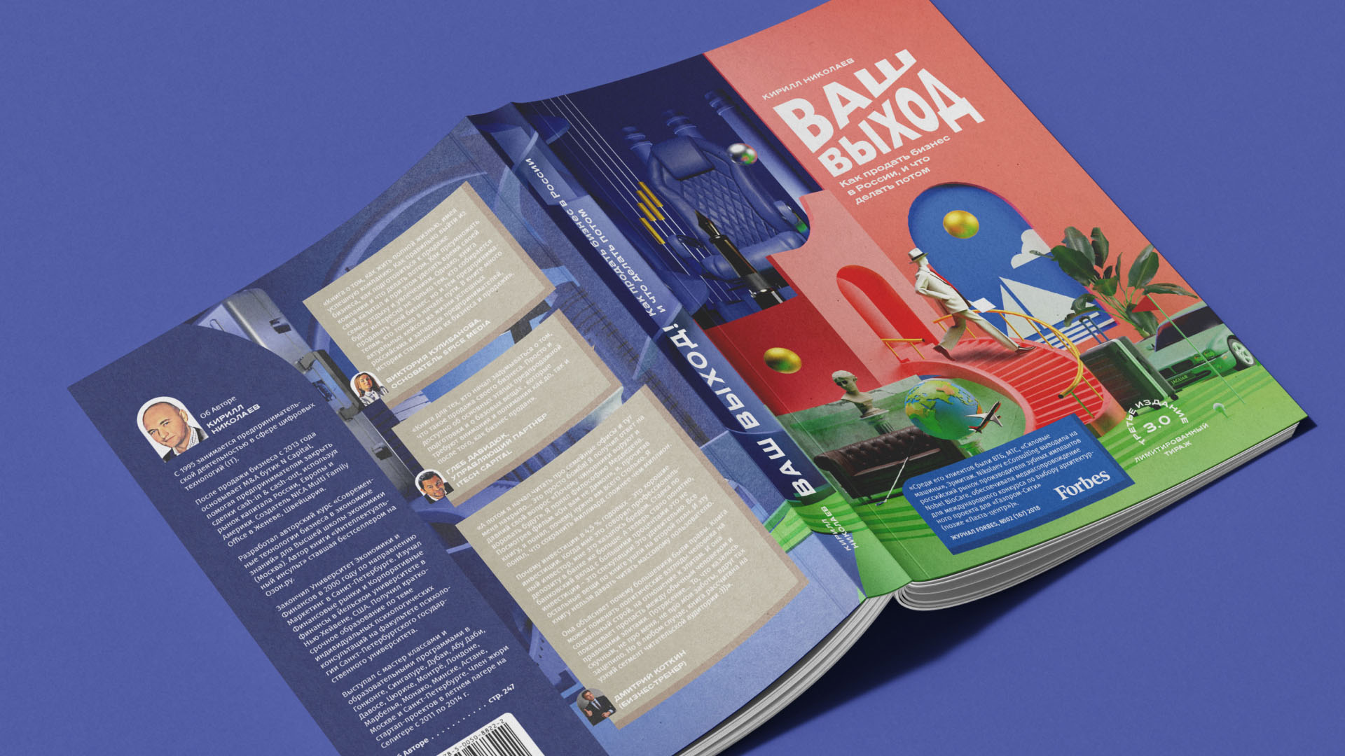 I was commissioned to design a new visual identity for the reissue of “Your Exit” by Kirill Nikolaev — a bestselling book on how to sell a business in Russia and what comes after. The goal was to create a cover that fully conveys the essence of the book while updating its layout and graphics.